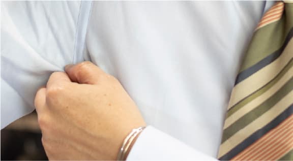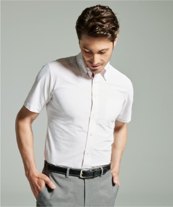 「肌に直接触れるシャツは肌触りがとても大切ですが、高温多湿な日本の夏を快適に過ごすには、通気性や吸湿性、速乾性、さらに汗で張り付いても動きやすさをキープするストレッチ性など、多くの機能がビジネスシャツには問われます。また夏場はジャケットを羽織らず、ネクタイも締めないのがもはや当たり前ですが、それは逆を言えば、シャツ一枚だけで、失礼にならないきちんとしたスタイルを装わなければならないということ。
