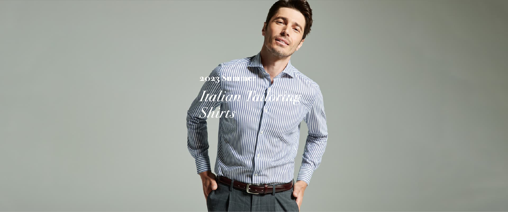 イタリアンテーラリングならではの柔らかな着心地とシルエットをベースに、試行錯誤を繰り返し、ミリ単位でフィット感を調整したドレッシーなショートスリーブを採用。新開発の100双絡み織りに加え、ウインドーペーンや逆抜きストライプなど一枚で着てもさまになる色柄もラインナップしています。