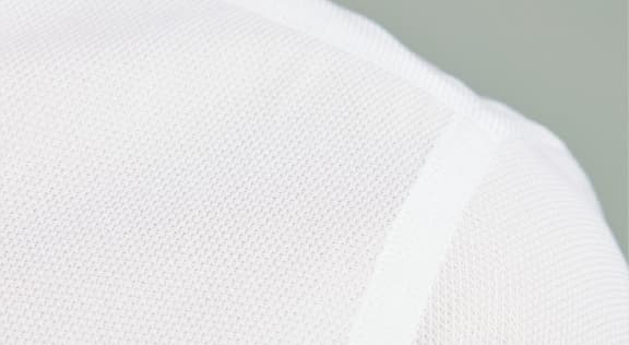 夏の定番である絡み織り素材は、通気性に富む反面、糸を強く撚ってからメッシュ状に織るため、ざらっとした肌触りになることも。そこで上質コットンの100番手双糸を用い、混率もコットン70%ポリエステル30%に変更。柔軟でサラッとした肌触りに。
