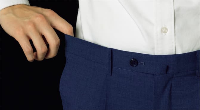 ナチュラルストレッチで快適ストレッチ素材を加えず、生地の伸度を活かしたナチュラルストレッチ仕様により、快適な着心地が味わえます。スリーピースで着ても窮屈感はなしです。