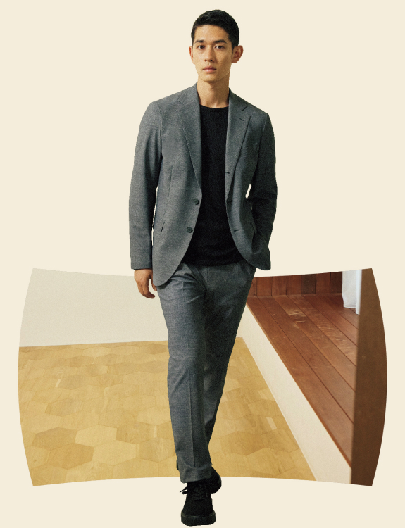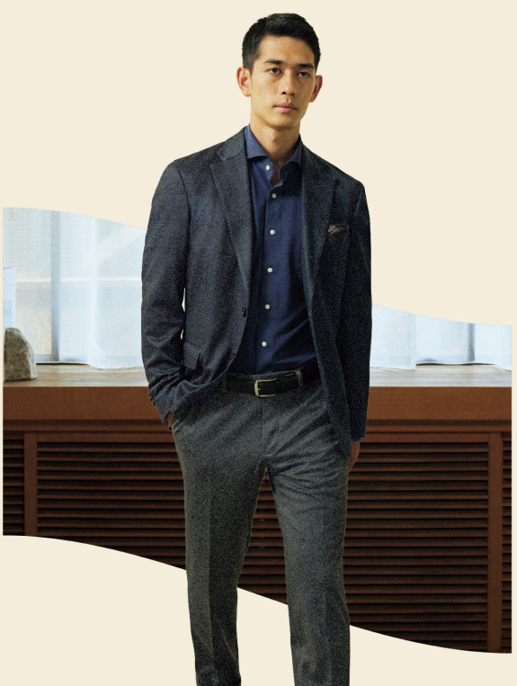 いまや定番ともいえるジャージー素材のビジネスウェア。オンリーのジャージーシリーズ「ジャージー ジャーニー」も大充実ですが、仕事服である以上、快適なだけでは不十分です。そこでオンリーは、仕立て職人の技を駆使した“テーラード ジャージー”を提案。凛とした立体感と快適な伸縮性を併せもつ、オンリーならではのジャージーウェアです。