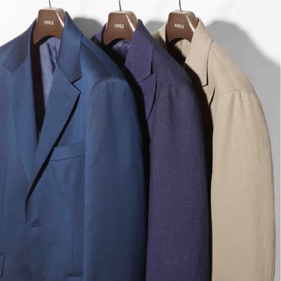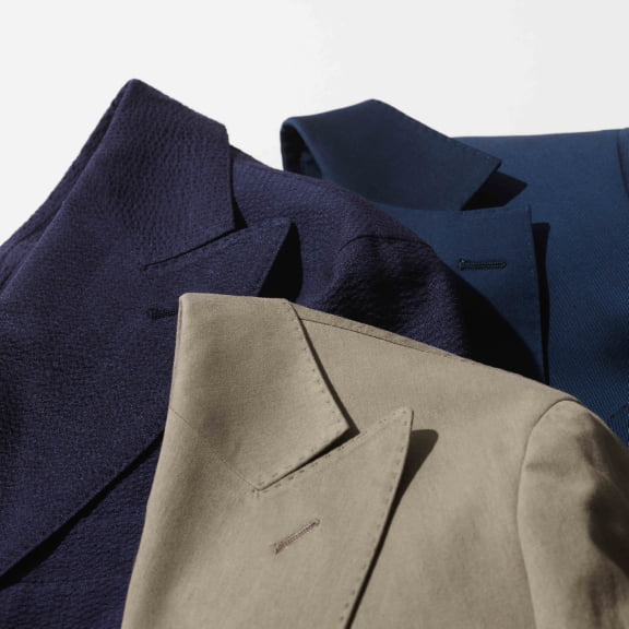 コットンスーツ、シアサッカースーツ、スリーピーススーツの3着のスーツをピックアップ。