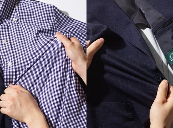 出張やゴルフにもいいですね」ONLY GREENのジャケットは、日々の仕事着としてはもちろん、出張やゴルフ、旅行にも最適。長時間着ていてもシルエットが崩れることはなく、軽くてシワにならないので、スーツケースに入れてもかさばりません。ストレッチ性も高いので、運転時に着用しても窮屈さを感じることはありませんよ。