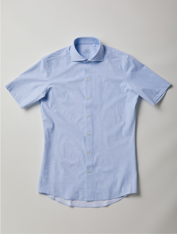 カジュアルな印象が強い半袖シャツですが、袖筒をやや細く、袖丈をやや長めに設定することで袖口が浮き立ってしまうのを抑え、フィット感を向上。華奢な日本人の腕にも程よくフィットし、ドレッシーでビジネス見えする絶妙な半袖を新開発しました。