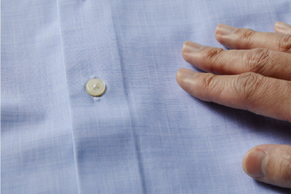 薄く滑りやすいナイロン生地を縫製する技術力は他にはできないオンリーならでは。機能性はもちろん、ビジネスシーンで第一ボタンを開けた際、胸元が程よく開くように第二ボタンの位置までも絶妙に計算されています。