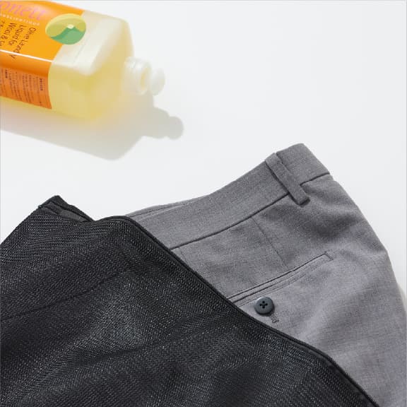 お手入れだってイージー汗をかきやすい夏場はスラックスをこまめに洗いたい。インビジブルのパンツはウォッシャブル仕様のため、いちいちクリーニングに出す手間は必要なく、自宅の洗濯機で手軽に洗うことができる。しかも、ストレッチ生地はシワになりにくいうえ、インビジブル仕様によってクリースが消えてしまう心配もない。
