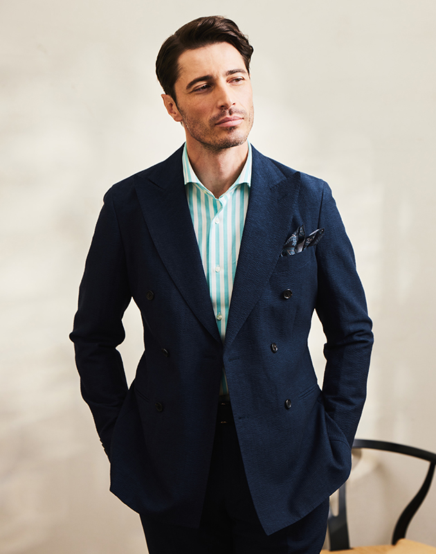 「イタリアのシャツのフィット感と柔らかなシルエットが好きで昔から着ていたのですが、耐久性や価格面から毎日着るのは難しいと感じていました。それがあるとき、弊社のスーツを長年作っている中国の工場がイタリアから技術者を招き、イタリア仕立てのシャツの生産ラインを作るという話があり、これは絶好の機会とそのラインで弊社のシャツを作ることに決めたのです。後付け袖や肩のいせ込み、細かな運針など、イタリアンシャツらしいこだわりを凝縮しましたが、当初はコストが収まりませんでした。しかし、技術者がマシンメイドの得意な北イタリアの有名シャツメーカー出身なので、マシンを駆使してくれてなんとか収まりました。
