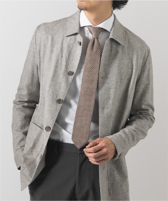 24SSは旬素材コットンリネンを用いつつ、ドレスシャツエ場で縫うことで襟周りの上品さや腕の動き