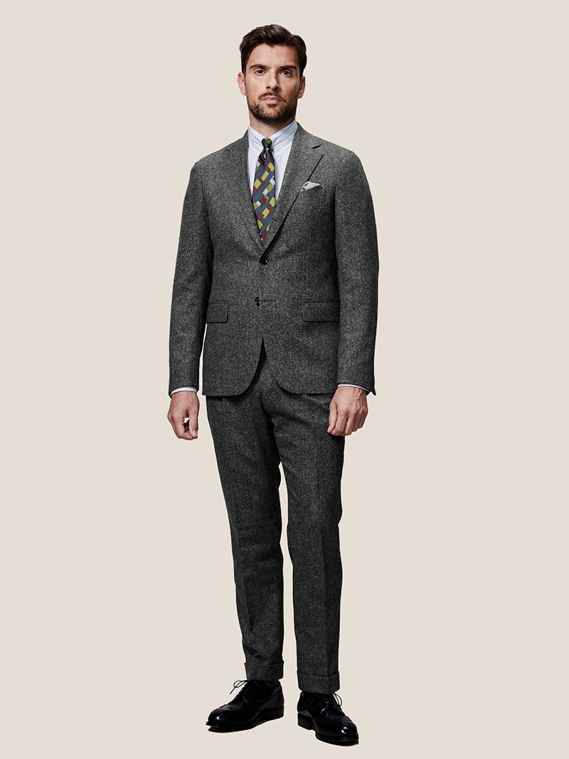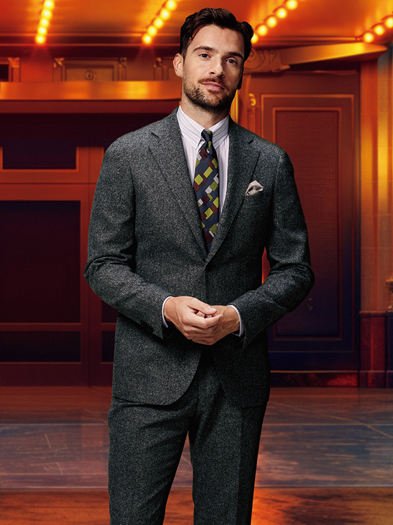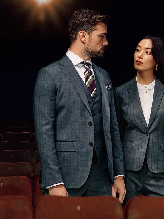 ジャケットを脱いでもさまになるスリーピース。クラシックながら、現代的な使い勝手が近年幅広い世代に人気のスーツです。
