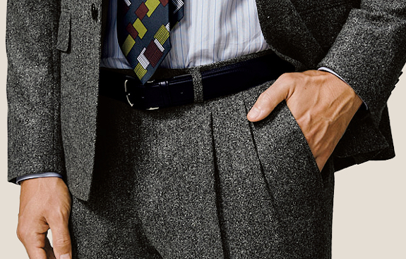 パンツも2タックの新型モデル。クラシックな印象に加え、ゆとりのある腰まわりが快適です。シルエットは細すぎないテーパード。