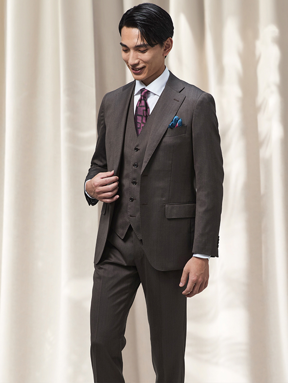 上質なウールを100%用い、西川毛織の高度な技術で織り上げる「極」。その上質感と光沢は、結婚式やパーティなどのオケージョンだけではなく、ビジネスシーンにも美しく映えます。いつものシャツとタイを合わせるだけで、凛々しくドレッシーなビジネススタイルが装えるはずです。