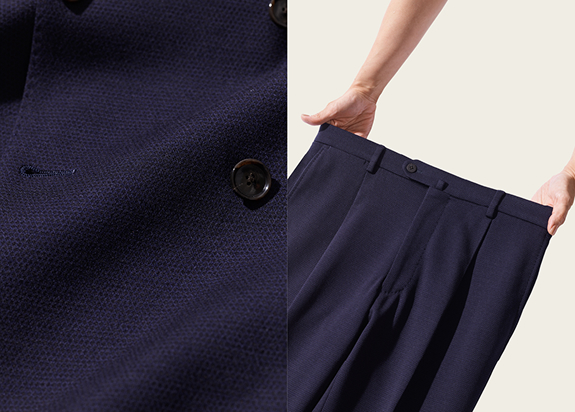 川田 : たしかに風合いが軽くなめらかで、梳毛の生地に見えますね。着用期間が長くなったのはうれしいですね。