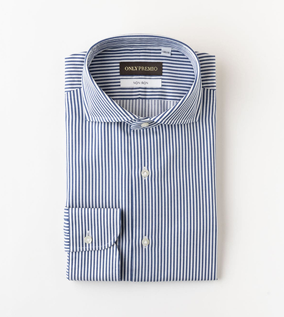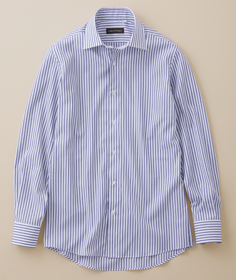 生地の肌ざわりは繊維の質が左右し、繊維が長く細いほど柔軟でなめらかになります。オンリー プレミオの「120番手双糸 綿100%シャツ」は、120番手という極細長繊維のコットンを使用。さらに2本の原糸を撚り合わせた双糸にして織り上げることで、快適な肌ざわりと丈夫さを兼ね備える生地が完成しました。イタリアのテーラードシャツに倣った本格仕立てでお届けする自信作です。