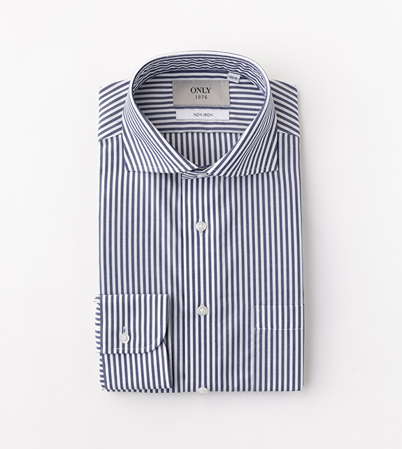 クオリティとトレンド性にこだわった、「オンリー 1976」ラインのノンアイロンシャツ。コットン100%のファブリックを用い、特殊なテープを随所に縫い込んでいくテープ縫製を採用。洗濯してもパッカリング(縫製部分のシワ)が発生しにくく、美しさを保ちます。また色柄のバリエーションが豊富なのも魅力です。