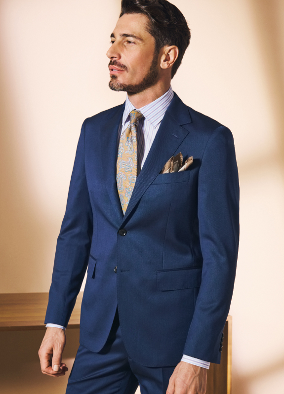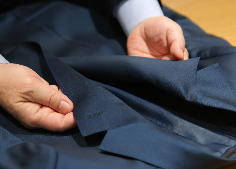 今季2025年春夏商品の生地は2024年の夏頃に買い付けたのですが、そのときにちょうど“1ドル=157円”という歴史的円高を記録した時期が重なり、約1ヶ月半後の支払い額が想定外の安値だったのです。そんな安く仕入れた生地で仕立てたスーツは、予定通りの価格で販売すれば利益率は高まりますが、これはたまたま起きた幸運。ゆえに“仲間、正直、シンプル”という弊社の経営理念に則り、日頃の感謝を込めて、私たちの仲間であるお客様へ正直に還元しようと決めました。