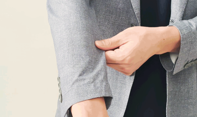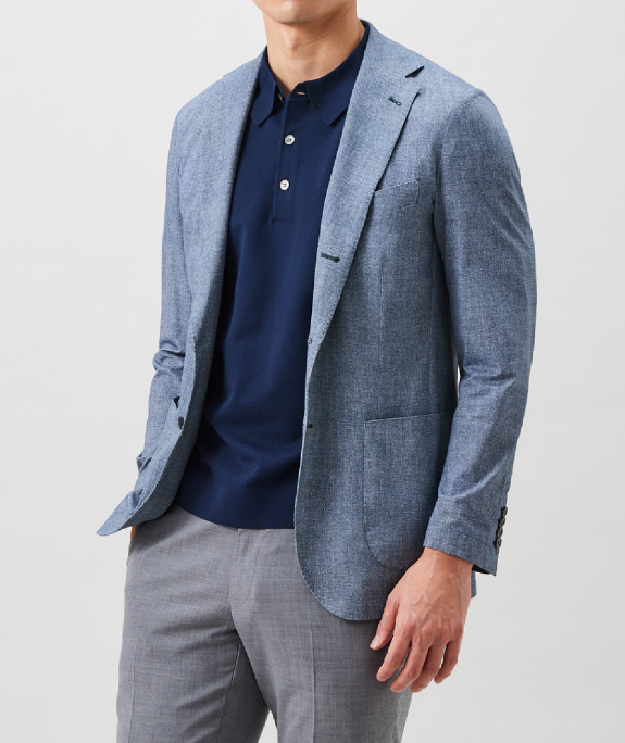 仕事帰りの軽い運動もそのままこなせるほどの動きやすさを備える「オンリー グリーン」シリーズのジャケット。新作はナイロン素材をベースに、メランジグレーのホップサック調テクスチャーをプリント。優れたストレッチ性と軽量性により、まるでスポーツジャージーのような着心地です。また接触冷感機能も備え、半袖シャツに羽織ると涼やかな着心地。