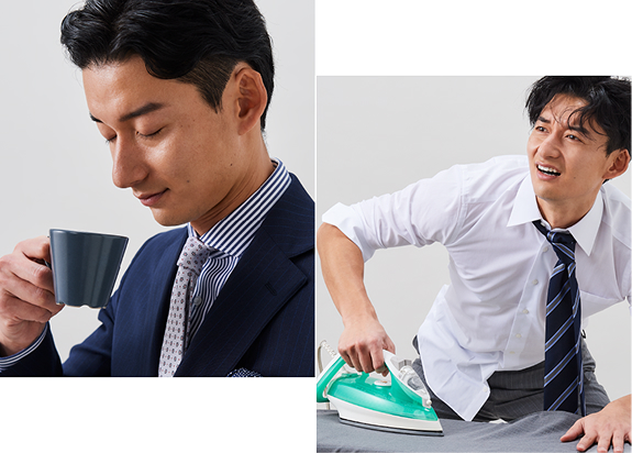 半永久的にクリースをキープする新技術でアイロン掛けも不要