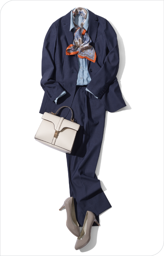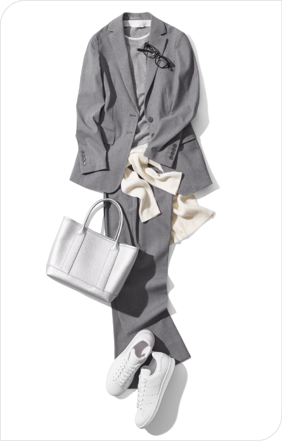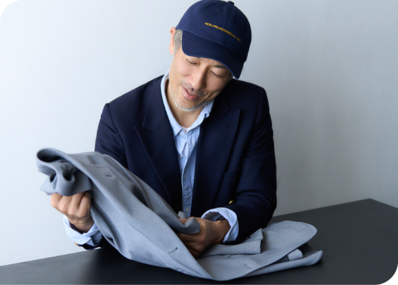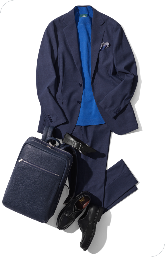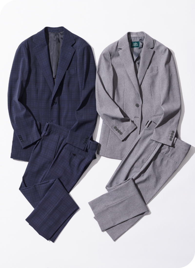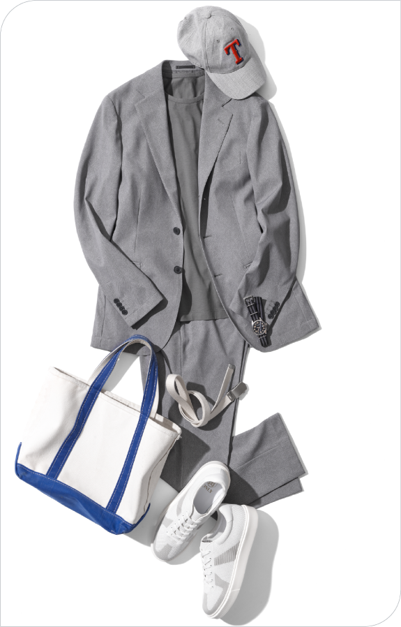 - 吉野:まるでスポーツウェアのようにぐんぐん伸びるのに、きちんとテーラード仕立てなのに驚きました。生地も一見プリントには見えないため、奥行きがあって高級感を感じます。これならTシャツやカットソーを合わせて、簡単に着こなしても節度が保てますね。もちろんタイドアップしたビジネススタイルにも使えるので、その汎用性の高さも魅力だと思います。ジャケット単体、パンツ単体で使うのもありです。