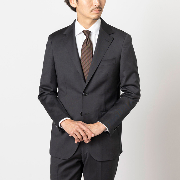 2022年の登場以来、毎シーズン好評をいただき、オンリーのベストセラースーツのひとつとなった「極」。毛織物の世界的産地である愛知県尾州地区のトップメーカーである、西川毛織の高度な技術力を駆使した生地を用い、オンリーが仕立てたスーツは、その凛々しいフォーマルテイストの表情によってビジネスとセレモニーを兼用できるのが特徴です。2025年春夏より綾織り生地を定番化。深みと艶のあるフォーマルなチャコールカラーに加え、ナチュラルストレッチや柔軟性が加わり、着心地が進化しました。一着備えておけば普段のビジネスシーンはもちろんのこと、各種パーティや結婚式などのセレモニーシーンでも活躍する、コストパフォーマンスに優れた自信作です。
