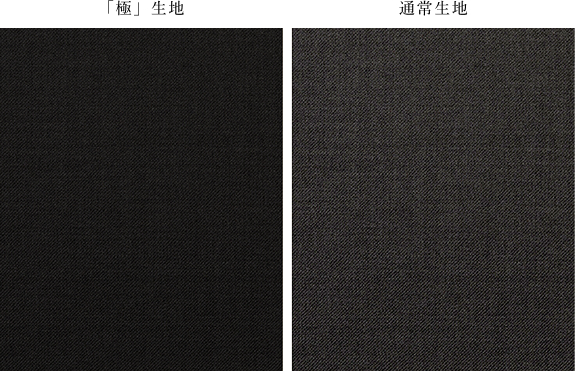 "毛羽だたずムラが出ないように染色しているため、フォーマルでも着れるような適度な光沢感と上品さが際立つ生地に仕上がっています。