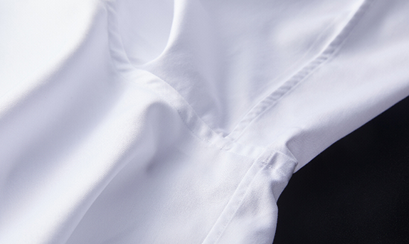 毎日のアイロン掛けから解放してくれる、オンリーのノンアイロンシャツ。特殊な加工で繊維内部を改質させて形態安定性を高める手法により、コットン100%で実現しました。ゆえに上質感や肌ざわりは通常のドレスシャツと変わりません。さらに特殊なテープを肩と脇に縫い込むことにより、縫製部分が縮んでシワになるパッカリング(縫い縮み)も発生しにくくなっています。