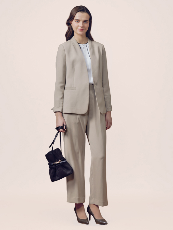 詳細はこちらノーカラーセットアップの新しい使い方。選べる組み合わせで、ハレの日の装いから日常の仕事まで活躍します。