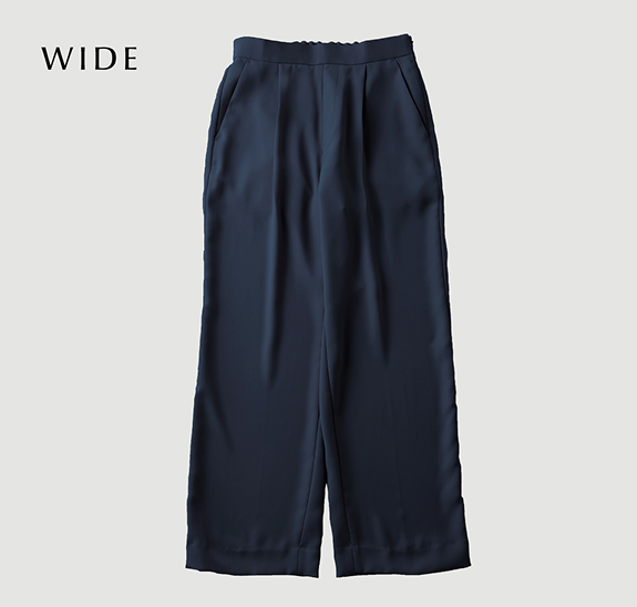 パンツスタイルでもネイビーなら安心感のある完成度。