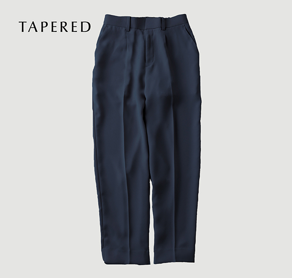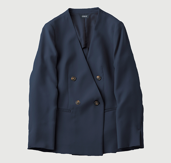 ダブルジャケットで格式ある佇まいとテーパードなパンツで端正なシルエットに。ネイビーならではの安心感でフォーマル寄りの式典や公式な場に。