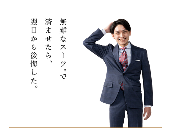 - 高品質生地+国内縫製で「好印象」が得られるスーツを作ります