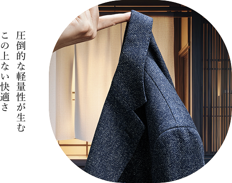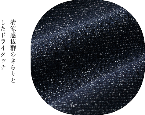 強撚糸ならではのさらりとした肌触りとドライタッチにより、清涼感に富む着心地。高温多湿な日本のサマーシーズンには、まさしくうってつけといえます。