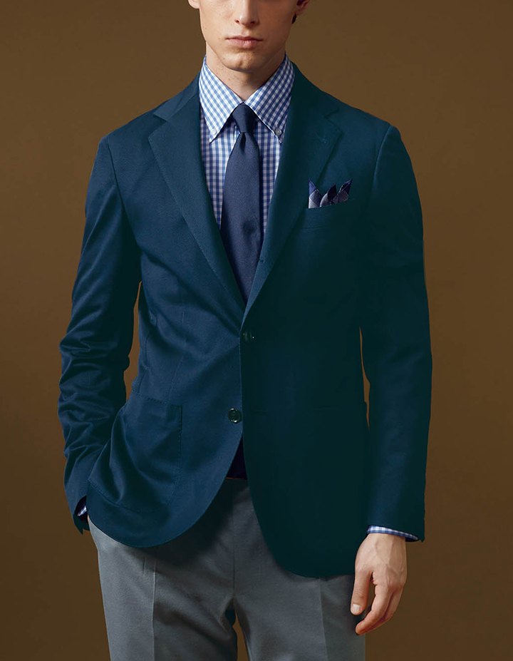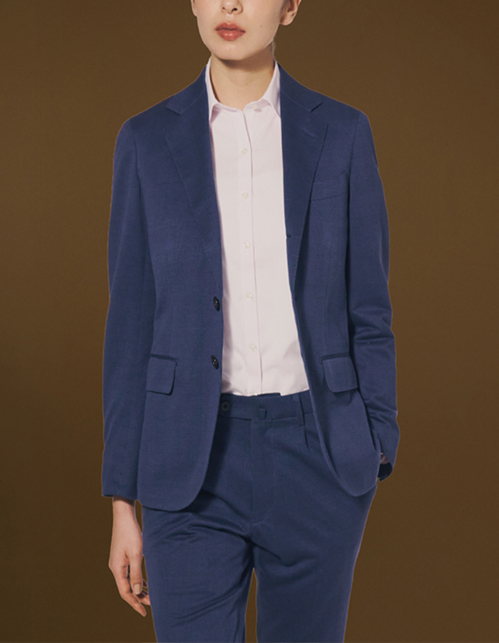 ジャージー素材でありながら、オンリーが誇るスーツ工場で、高度なプレス技術とアイロンワークを駆使した仕立て。特に、顔とも言える「肩まわり」の立体的な美しさは、既成のジャージーウェアとは一線を画す「本物のスーツ」の証です。