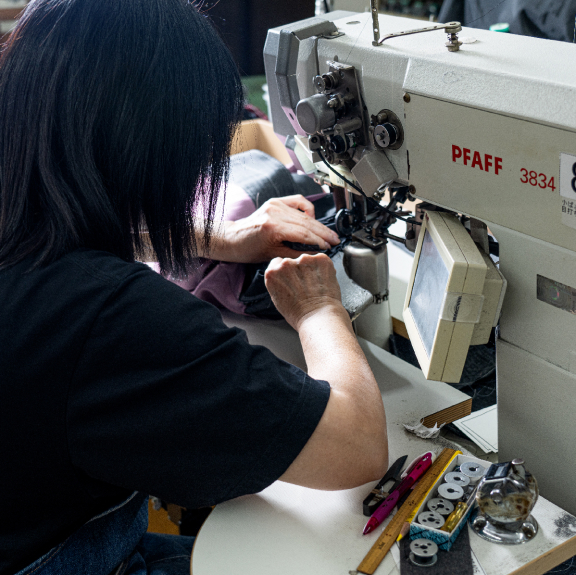 - 「縫製は繊細な作業なので、体調や精神状態も影響します。だから、日々、心身のコンディションを整えることにも努めています」