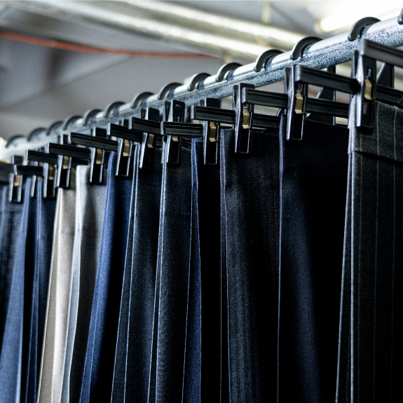 国内の自社工場で仕立てることがオンリーのオーダースーツ、「テーラーメイド」のこだわりだ。理由はほかでもない、ブランドのコンセプトである”ブレない品質”を実現するため。