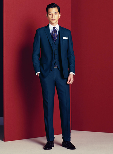 きっちりタイドアップし着こなせば管理職やチームリーダーなどオフィスで立場あるエグゼクティブの装いに相応しいスリーピースに。