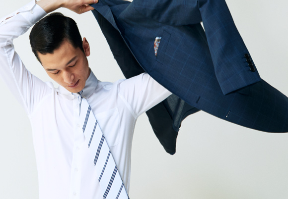高温多湿な日本の夏でもスーツの命題である品格や清潔感を保つことができる夏の自信作です。