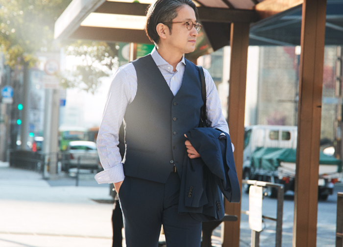 夏の暑い通勤時も「きちんと感」を出したいなら、ベストスタイルがおすすめ。シャツ一枚よりも格段にお洒落。素材はストレッチ性のあるソフトタッチなポリエステル生地で、暑い夏でも快適に過ごせます。ジャケット・ベスト・パンツのセットアップは、幅広いシーンで着用いただけます。
