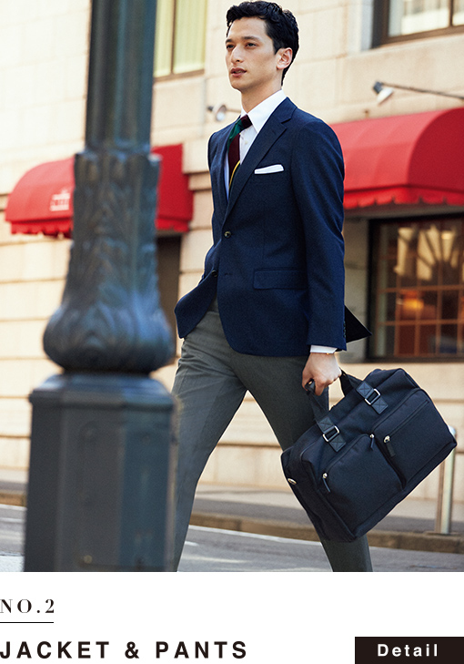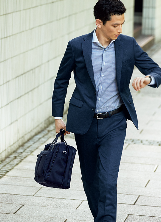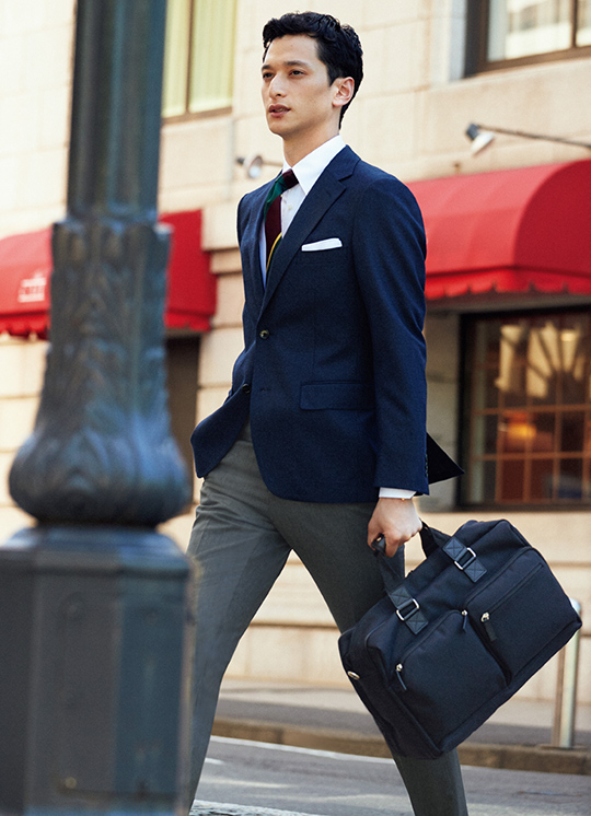 出張などの滞在先においては、あらゆるシーンを快適にこなせるスーツやジャケット、小物の選びが必要。