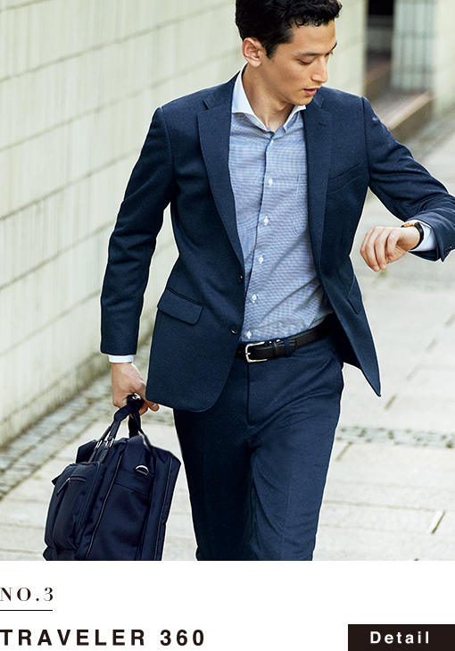防シワ素材のジャケット&パンツ。
