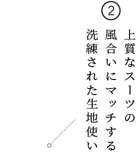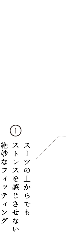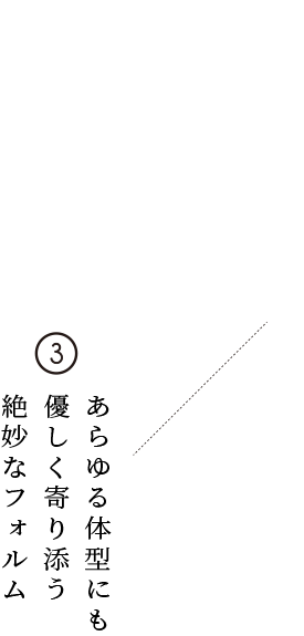 スタイルを良く見せるポイントは、襟立ちの美しさにあり。テーラードの技術に裏打ちされた背中や肩周りからスラリと伸びるように立ち上がる襟の設計が、体型補正効果とともに、洗練された雰囲気をも醸し出すのです。