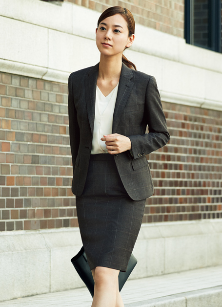 ドラゴ社のスーパー120′sのウール生地を用いたスカートスーツ。女性らしさのなかに温かみもあり。