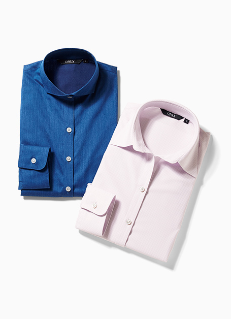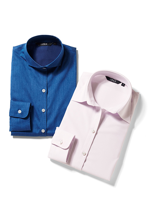 ストレッチに富んだシャンブレー素材からイージーケア仕様のコットン素材まで、幅広いシャツを展開。