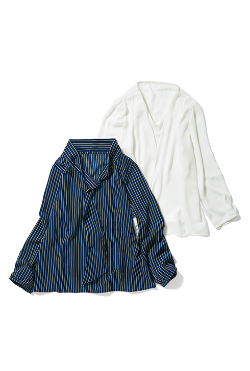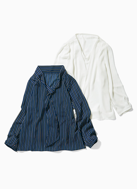 強撚糸によりさらっとした肌触りと美しいドレープを実現するカットソー。ボウタイが胸元を彩るストライプ仕様もおすすめ。