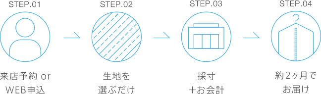 「ミニマルオーダー」は採寸と生地選びだけのシンプルなオーダーシステムです。事前に来店予約していただき、専門スタッフが採寸します。初回ご購入時の採寸データが管理されますので、2回目以降は生地を選ぶだけでご注文できます。メンズ限定でネットから再注文も可能です。