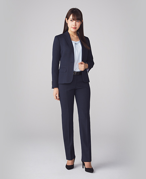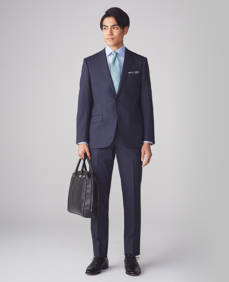 きちんと感を醸し出すネイビーは、社会人としてマストな1着。色味のあるインナーも合わせやすく、学生時代のブラックスーツよりもスタイリッシュな印象になります。