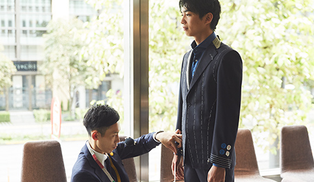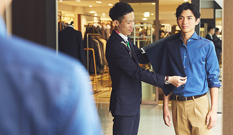採寸確かな採寸のためにオリジナルのゲージ服を着用します。正しいフィッティングをお知らせいたしますので、お好みに合わせて調整も可能です。