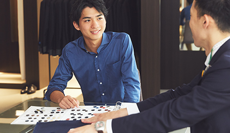 生地 / モデル選び豊富な生地バンチから、お気に入りの色柄生地をお選びください。スーツのモデルも英国、イタリアなど、好みと体型に合ったものをお選びいただけます。