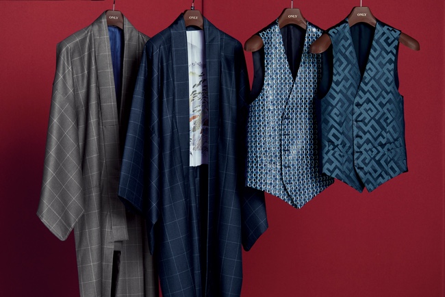 There are items you can only find in Kyoto born “ONLY”. Our items give you the experience of the joy to dress up as you are in a gallery. The silk imported jacquard jacket and silk blended three-piece suit are not only matches with formal occasions such as a wedding party or reception, but also nice to wear on holidays as well. There are a thousand kinds of vests and bow ties which go well with your suits. We also have vests made of the fabric of “Kyozome” and “Nishijin-ori”,and Kimonos made of wool fabrics for suits.