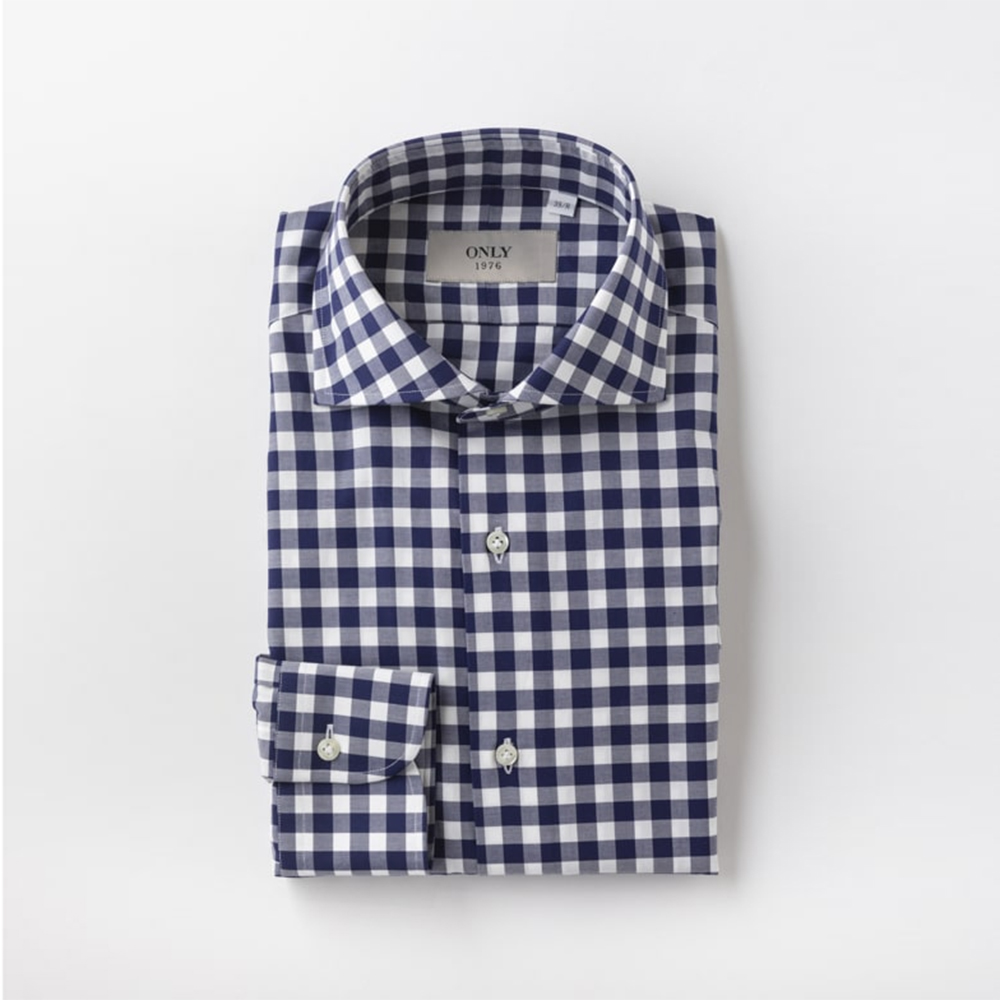 上質な生地が織りなす程よい光沢がカジュアルシャツのギンガムチェックと一線を画すシャツ。