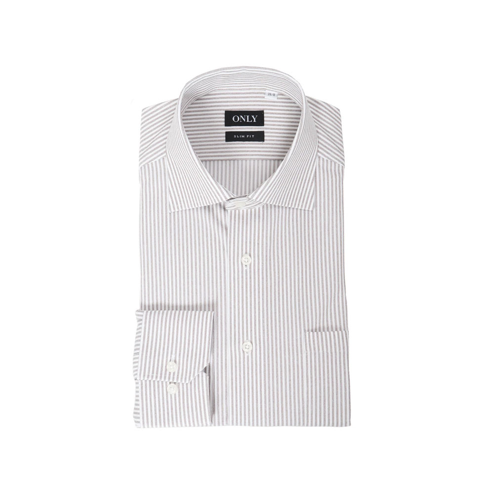 肌になじみやすい淡いブラウンカラーを使用したストライプシャツ。