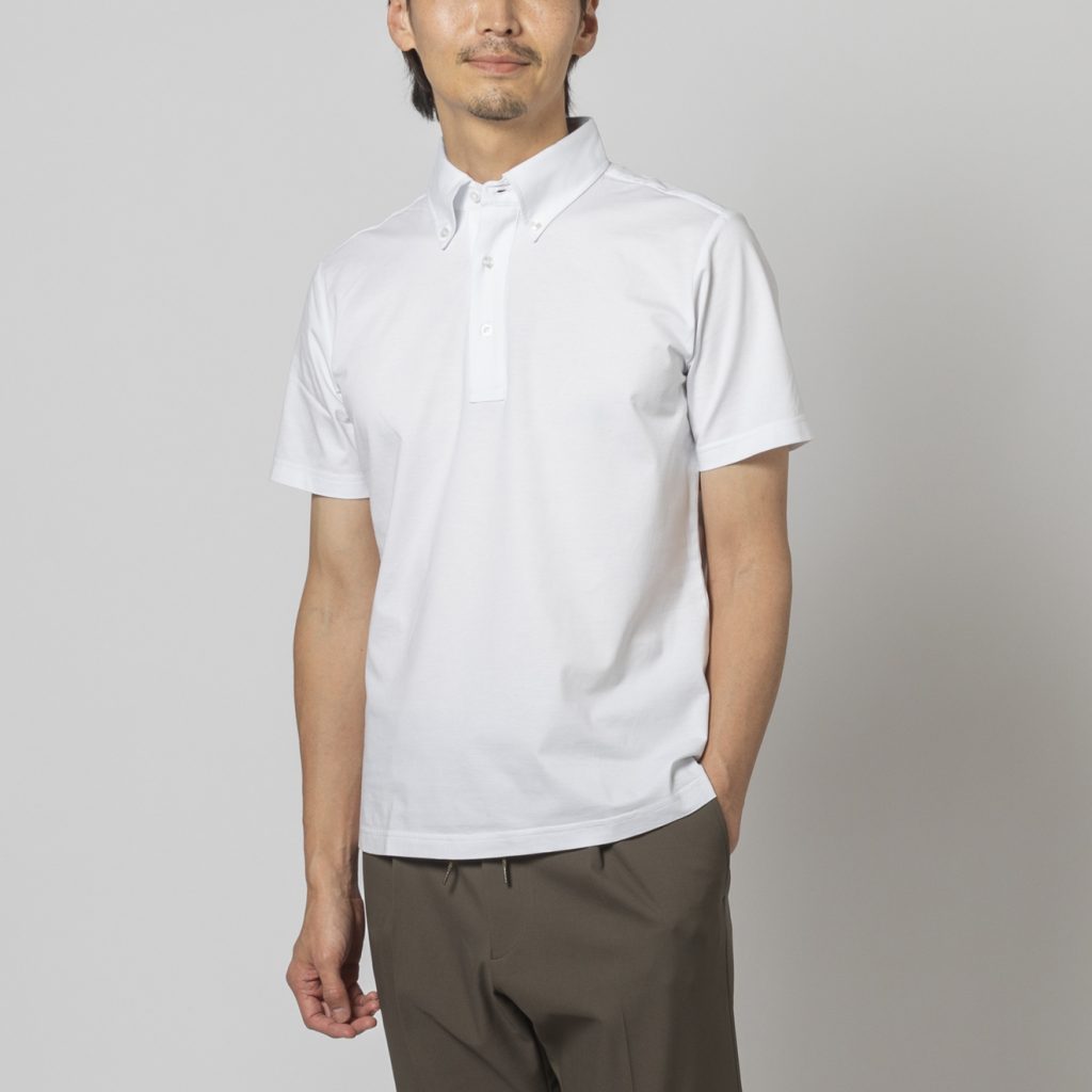 これまでの鹿の子などのジャージーポロと違い、プレーンな生地感が大人な感じです。